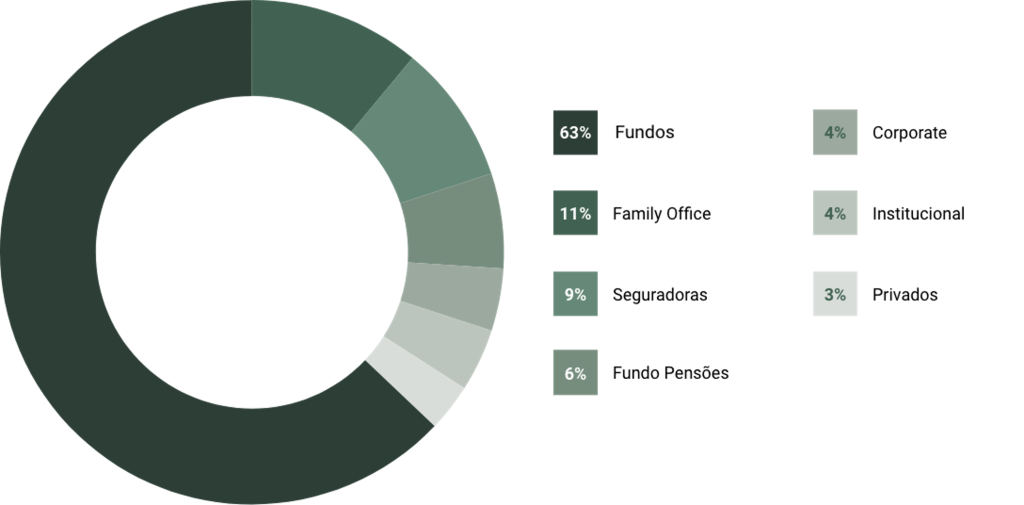 Os Investidores nos Fundos geridos pela CoRe Capital são entidades vocacionadas para o investimento em organismos de investimento coletivo, nomeadamente Family Offices, Seguradoras e Fundos.